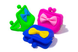 Brightly coloured silicon purse with clip fastening and hinged opening. This flexible yet durable purse is specially moulded to keep its shape, supported by a pair of hinges that make opening and closing the purse incredibly simple and help keep it sealed. The front is decorated by a large bow decoration. Available in an assortment of colours.