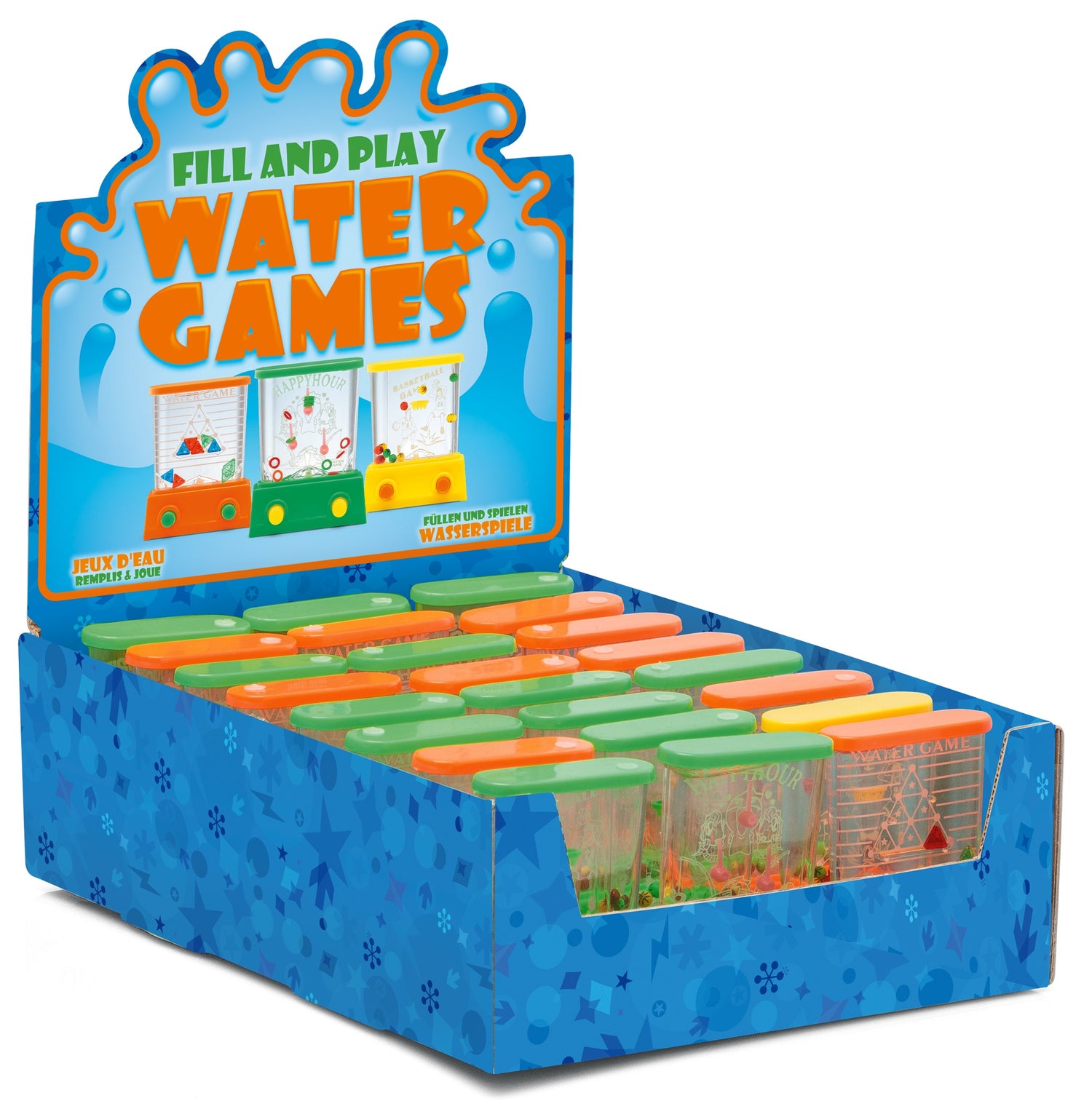 Water tank game with twin air pump controls. Fill the game area with water, then press the two buttons to push the pieces around the water. There are a variety of games available including basketball, hula hoop and a triangle puzzle.