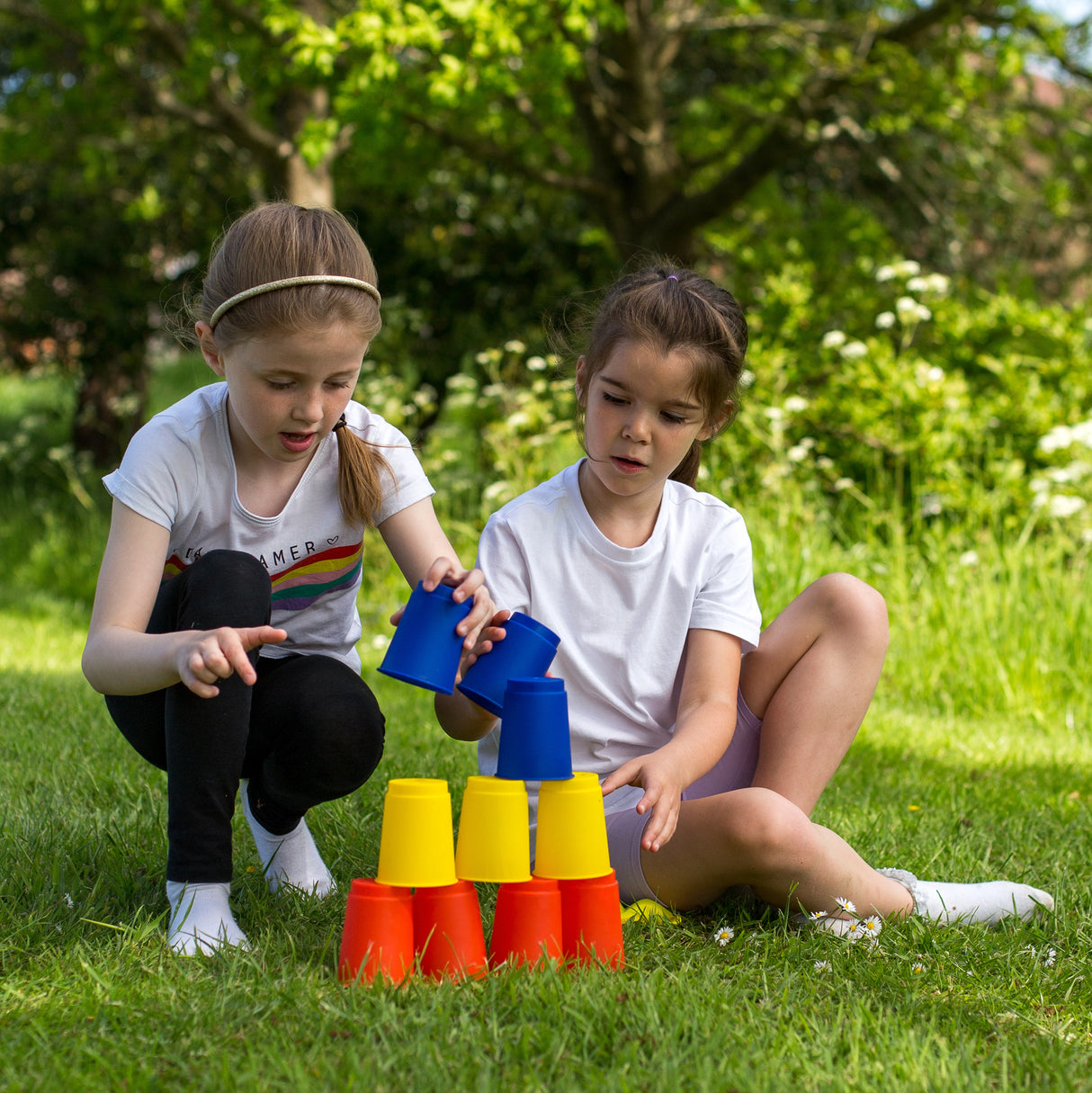 Ensemble de jeux d'extérieur inspiré des journées sportives, permettant à quatre joueurs de s'affronter sur une série d'épreuves classiques. L'ensemble comprend quatre sacs pour la course, quatre cuillères avec des œufs en plastique, des gobelets et des sacs de sable pour les jeux de lancer de cible, ainsi que des rubans de départ et d'arrivée. C'est un ensemble idéal pour le jardin, les sorties, ou même pour les écoles.
