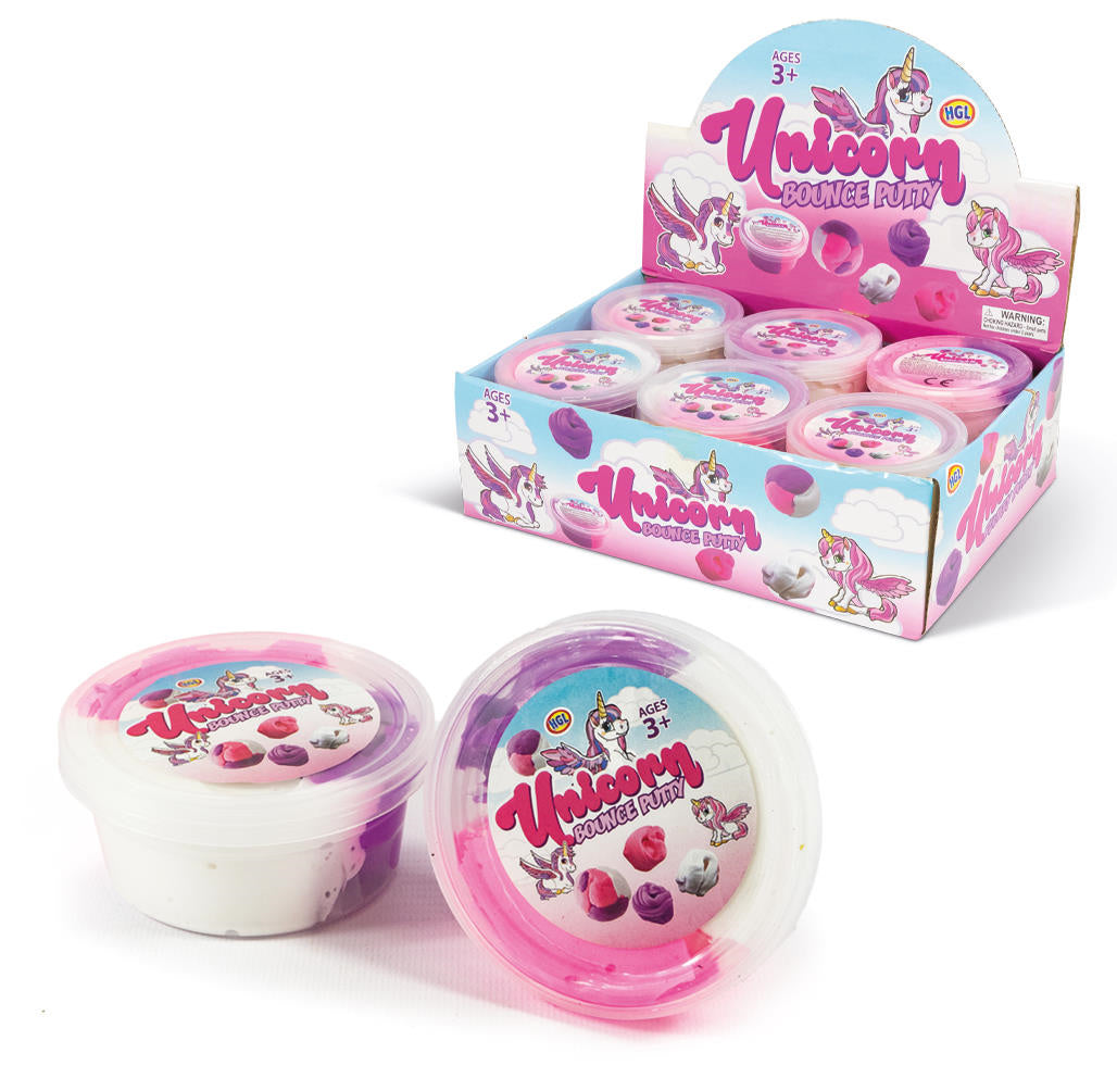 Pot de pâte à modeler aux couleurs variées, dont du rose, du blanc et du violet – toutes les préférées des licornes ! Prenez un morceau de pâte à modeler, roulez-la en boule, puis lancez-la sur une surface dure et regardez-la rebondir. Elle se comporte comme une balle rebondissante classique ; vous seul pouvez lui donner sa forme. Vous pouvez mélanger les couleurs de pâte à modeler ou les garder séparées.