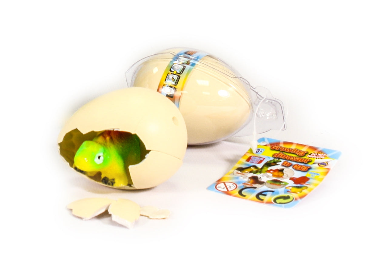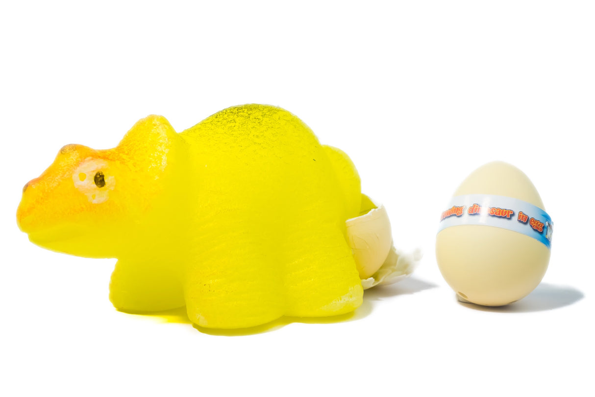 Œuf de dinosaure qui grandit dans l'eau. Plongez-le dans un liquide, puis observez son éclosion lente pendant plusieurs heures. Une fois sorti de l'œuf, le dinosaure continuera de grandir pendant quelques jours jusqu'à atteindre sa taille adulte.