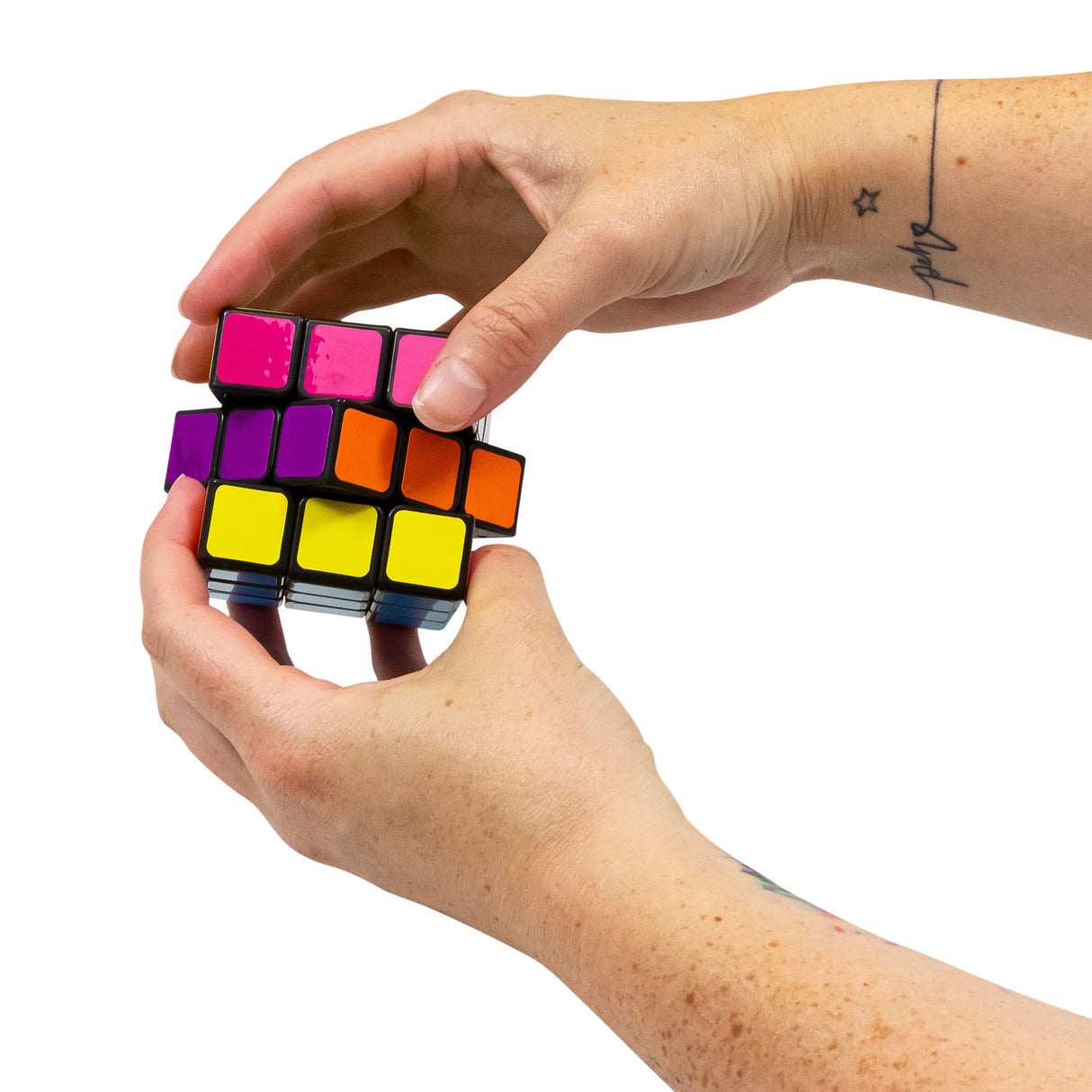 Le grand classique du puzzle est de retour ! Ce cube puzzle comporte neuf cases colorées sur chaque face, chaque ligne et chaque colonne étant montées sur un axe permettant de les tourner et de les enrouler pour mélanger les couleurs. Une fois mélangé, le but du jeu est de faire pivoter, déplacer et manipuler le cube pour que les couleurs de chaque face correspondent à nouveau. Ce cube classique trois par trois est une icône rétro et un jeu de puzzle très addictif pour tous les âges.