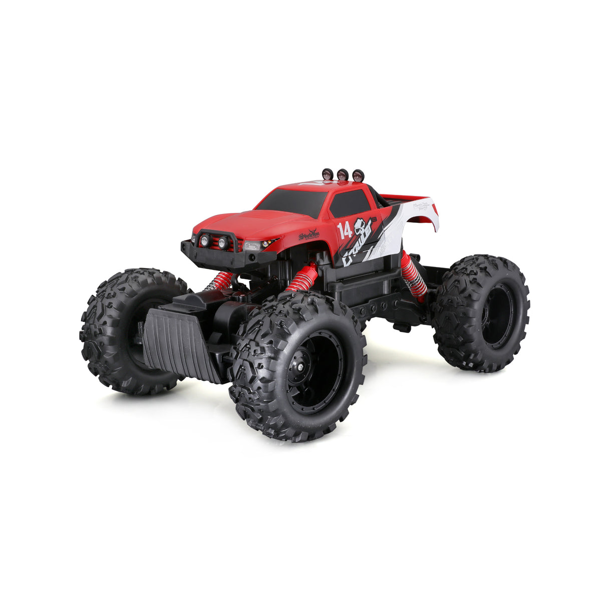 Monster truck télécommandé doté de fonctionnalités parfaitement adaptées aux terrains tout-terrain les plus extrêmes. Ses essieux avant et arrière sont dotés de suspensions à ressorts et de larges roues robustes qui permettent au bien nommé Rock Crawler de franchir les pentes les plus rocailleuses et les plus difficiles avec aisance. Il fonctionne également sur le système d'exploitation 2,4G, ce qui lui confère une portée de contrôle étendue et lui permet de piloter d'autres véhicules télécommandés sans subir d'interférences.