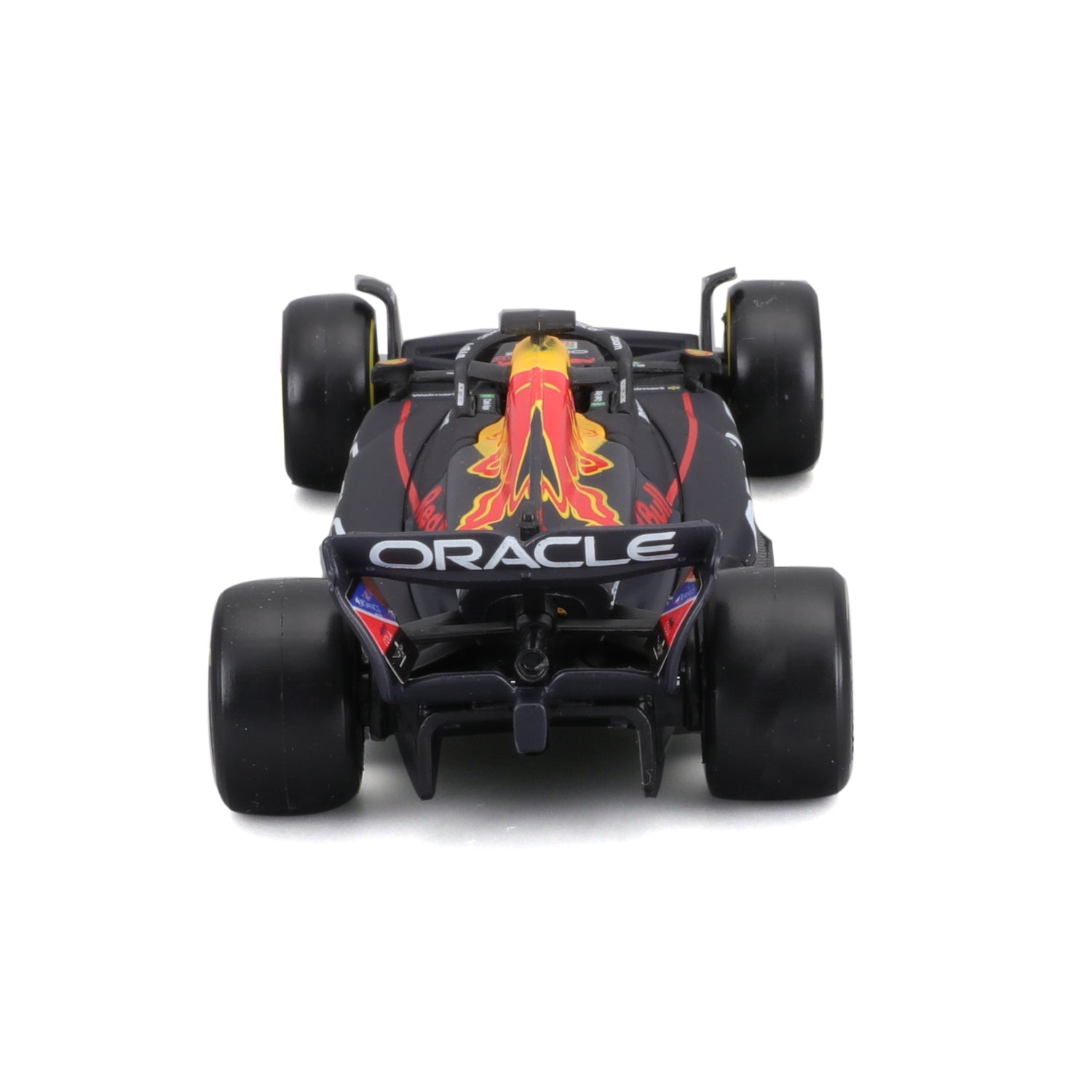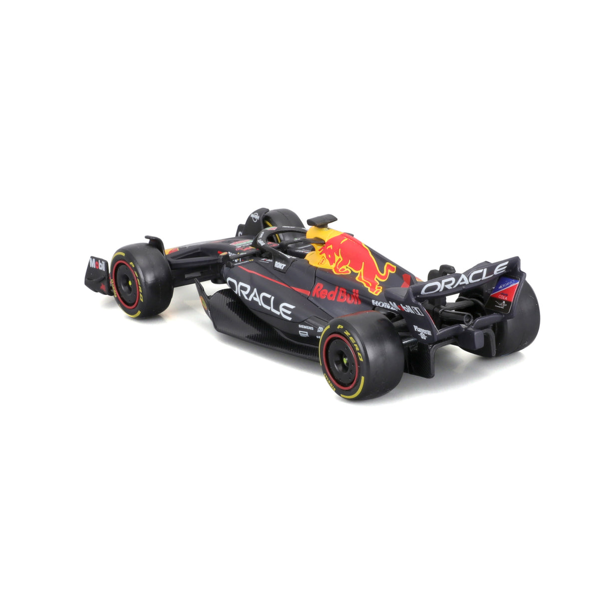 An intricately crafted replica of an F1 Red Bull Racing Rb19 2023 car as driven by Max Verstappen. This 1:43 scale diecast replica perfectly recreates the distinctive shape of the F1 car, capturing every aerodynamic curve and line as it can be seen on the real vehicle. The level of detail on the surface is incredible, with authentic sponsor and race decals perfectly recreated.