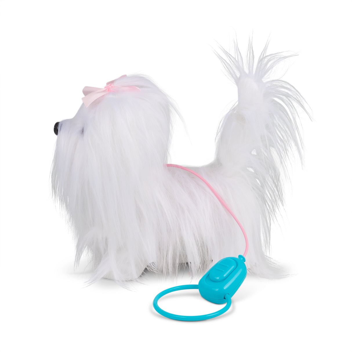 Following on from our incredibly popular Walking Westie line, this loveable Maltese is very similar but features a long white coat of fur and pink bow. This pup comes with a lead that features two buttons, one that makes it walk forward and another that triggers its bark action. Young children looking for an interactive friend will be instantly won over by its charms, whereas adults looking for toys and presents will see this plush animated dog as a clear winner. Part of the Animigos range.