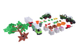 A 29 piece agriculture fresh farm set featuring 2 officially licensed Fendt 209 diecast model tractors with free-rolling wheels and accessories.