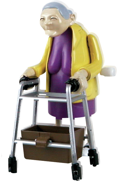 Twin set of clockwork ladies that shuffle forward aided by their Zimmer frames. Their curious appeal has something to do with the absurdity of the elderly racing, as well as the brilliantly detailed moulding and 'charismatic' expressions. Simply wind up the clockwork mechanism and then release to send each granny racing forwards.