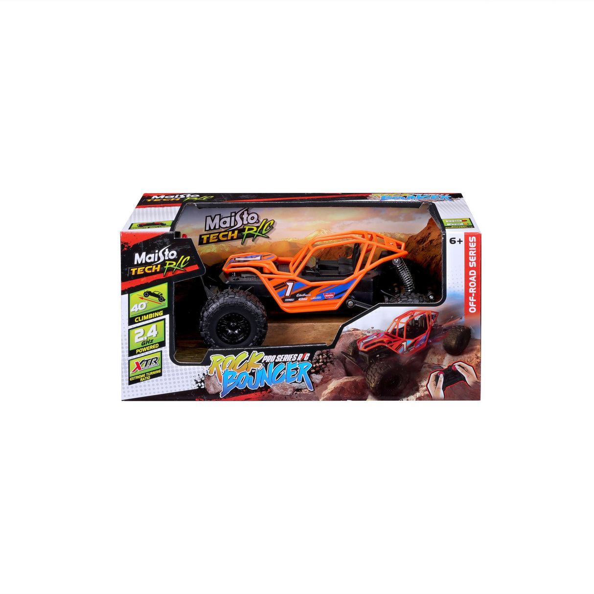 This Maisto Tech Pro Series Rock Bouncer remote control car is designed for off-road hobbyists. With its chunky off-road tires and dynamic suspension system, it can easily conquer rough terrain. The front and rear axles both have spring suspension and large, sturdy wheels that help it navigate steep inclines with ease. Additionally, it operates on the 2.4GHz operating system, which provides an extended control range and can operate alongside other RC vehicles without signal interference.
