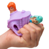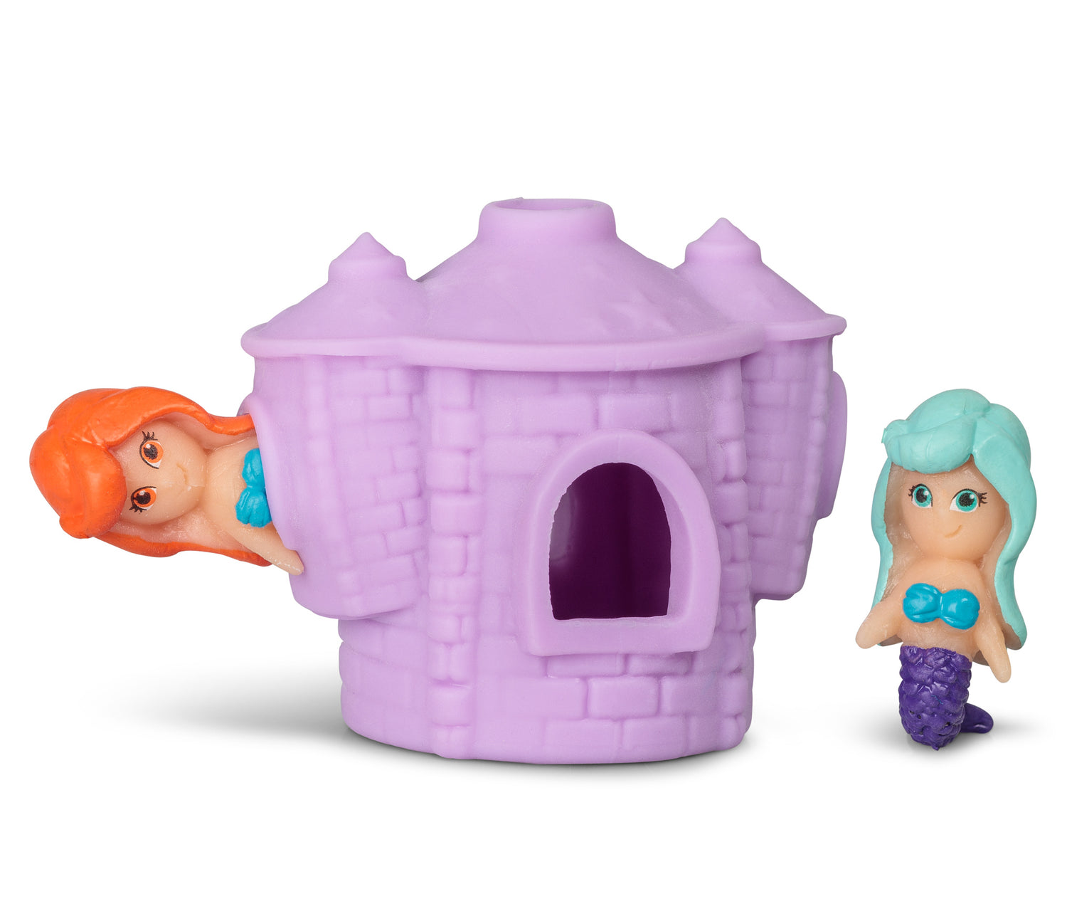 Stretchy and squeezy castle with a pair of bendy mermaids inside. Take the stretchy sirens and weave them through the various windows and doorways in the castle to pose them in a variety of fun ways. Each mermaid is brightly coloured with a good level of detail.