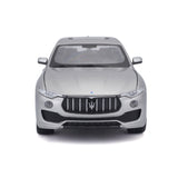 Diecast model of a 1:24 scale Maserati Levante that has been recreated in meticulous detail. The exterior displays all of the slick curves and sweeping lines of the original, whereas the interior shows the same high attention to detail, featuring carefully crafted replica upholstery. The chassis is finished with an electrostatic paint coating, giving it the ideal final touch.